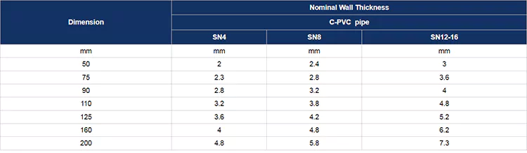 Η αντοχή της πίεσης και της αντοχής των επιπτώσεων του χλωριωμένου πολυβινυλίου χλωριούχου είναι καλύτερη από το PVC, κατάλληλο για να ταφεί σε σκυρόδεμα, ωστόσο, έχει μια ορισμένη ευγένεια σε περιβάλλον χαμηλής θερμοκρασίας και δεν είναι κατάλληλο για χρήση στην κατάψυξη.