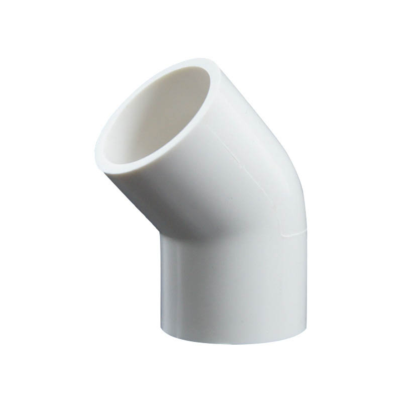 PVC 45 βαθμοί αγκώναςείναι μια κοινή τοποθέτηση σωλήνων που χρησιμοποιείται για τη σύνδεση δύο σωλήνων UPVC σε γωνία 45 μοιρών, αλλάζοντας έτσι την κατεύθυνση του αγωγού. Ο αγκώνας PVC 45 ° δεν έχει μόνο επιστημονική δομή και βολική εγκατάσταση, αλλά έχει επίσης ισχυρή αντοχή στη διάβρωση, καλή απόδοση σφράγισης και διάρκεια ζωής έως και 50 ετών υπό κανονικές συνθήκες. Είναι ένα από τα απαραίτητα βασικά στοιχεία του σύγχρονου σχεδιασμού του συστήματος υγρού.