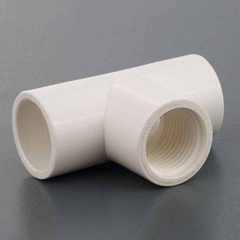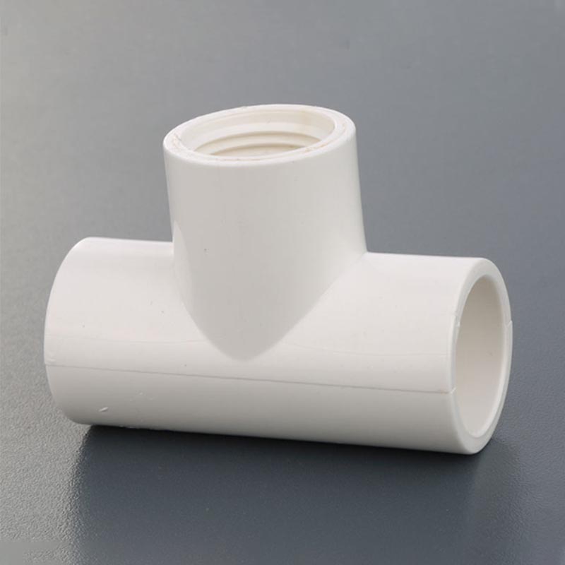 PVC θηλυκό μπλουζάκιείναι μια τοποθέτηση σε σχήμα Τ που επιτρέπει στην εκτροπή ή τη σύνδεση των υγρών σε ένα σωλήνα. Τα εσωτερικά του νήματα επιτρέπουν την ασφαλή και διαρροή σύνδεση με αρσενικούς σωλήνες ή εξαρτήματα. Το πολυβινυλοχλωρίδιο είναι ένα ανθεκτικό και οικονομικά αποδοτικό θερμοπλαστικό υλικό που χρησιμοποιείται συνήθως στην παροχή νερού και την αποστράγγιση των υδραυλικών συστημάτων.