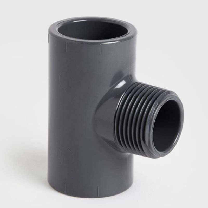 PVC αρσενικό μπλουζάκιείναι ένας σύνδεσμος με τρία σημεία πώλησης που είναι τοποθετημένα στους 90 μοίρες για να συνδέσουν τρεις σωλήνες μαζί ή να εκτρέψουν τα υγρά. Ονομάζεται "αρσενικό" μπλουζάκι επειδή ένα ή και τα δύο άκρα του μπλουζάκι είναι σπειροειδή αρσενικά σπειρώματα που μπορούν να βιδωθούν στο θηλυκό τοποθέτηση και οι άλλες θύρες μπορούν να εισαχθούν στον ίδιο σωλήνα διαμέτρου.